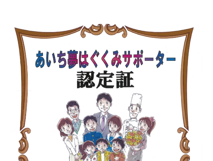 社員が仕事と生活の調和を図ることができるよう積極的に取り組んでいる企業として、「愛知県ファミリー・フレンドリー企業」の認定をいただきました。(令和5年8月)