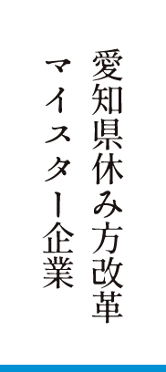 休むことのメリットを理解し、積極的に有給休暇取得ができる環境づくりを行っています。その活動が認められ「愛知県休み方改革マイスター企業」として認定をいただきました。(令和5年10月)